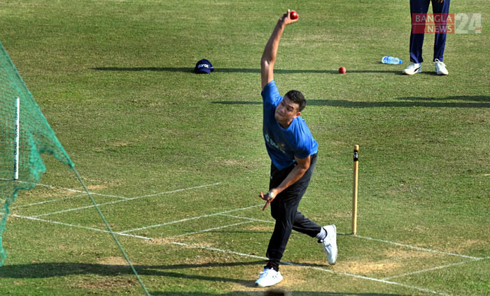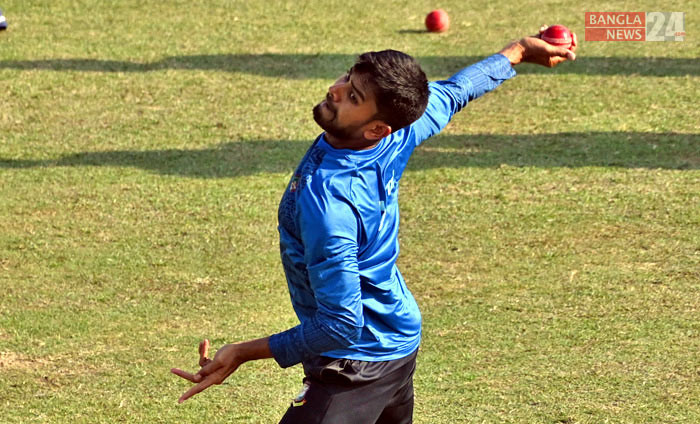 চট্টগ্রামের জহুর আহমেদ চৌধুরী স্টেডিয়ামে অনুশীলন করে বাংলাদেশ দল। ছবি: উজ্জ্বল ধর