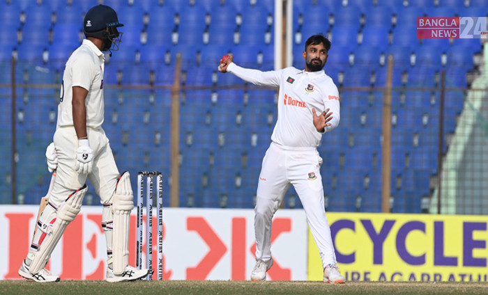 দ্বিতীয় ইনিংসে ভারতীয় ব্যাটারদের আউট করতে রীতিমত গলদঘর্ম টাইগার বোলাররা। তাইতো বল হাতে দেখা মেলে লিটন দাসকেও। চট্টগ্রামের জহুর আহমেদ চৌধুরী স্টেডিয়াম থেকে বিরল এই চিত্রটি ফ্রেমবন্দী করেছেন উজ্জ্বল ধর।