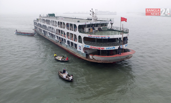 মেঘনায় ঘনকুয়াশায় লঞ্চ চলাচলে বিঘ্ন। ছবি: মুহাম্মদ মাসুদ আলম