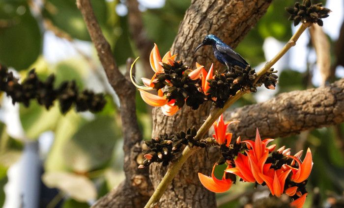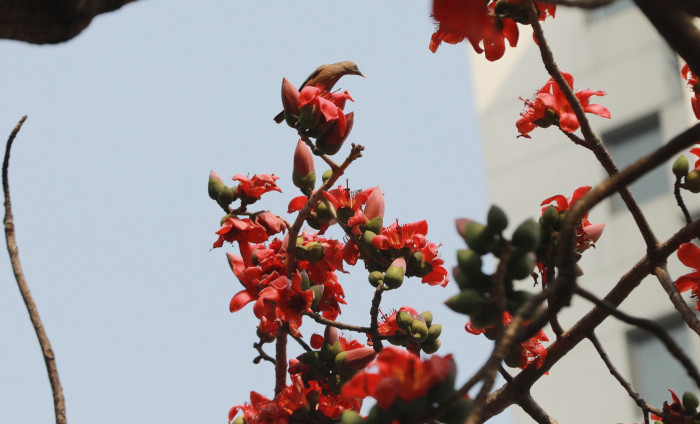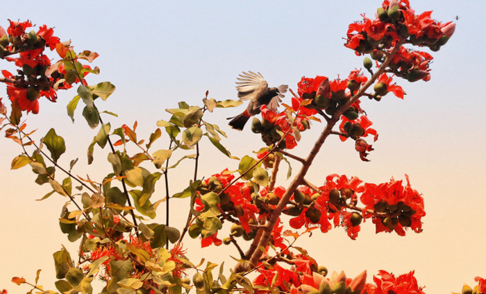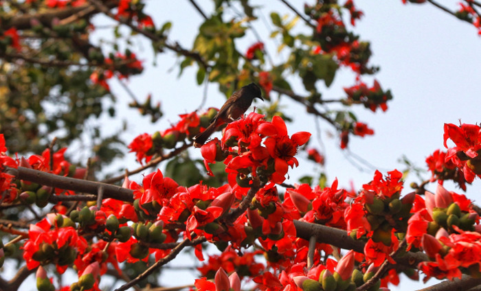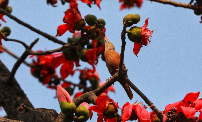 আসছে ফাল্গুন। বসন্তের আগমনে শিমুল-পলাশ গাছের ফুলে পাখির কলতান। ছবি তুলেছেন: ডিএইচ বাদল