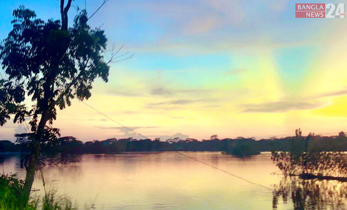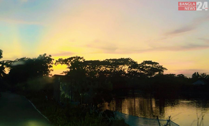 গোধূলির রঙিন আলোয় প্রকৃতির অপরূপ সৌন্দর্য। বরিশালের উজিরপুর থেকে ছবি তুলেছেন মোহাম্মদ নাহিয়ান