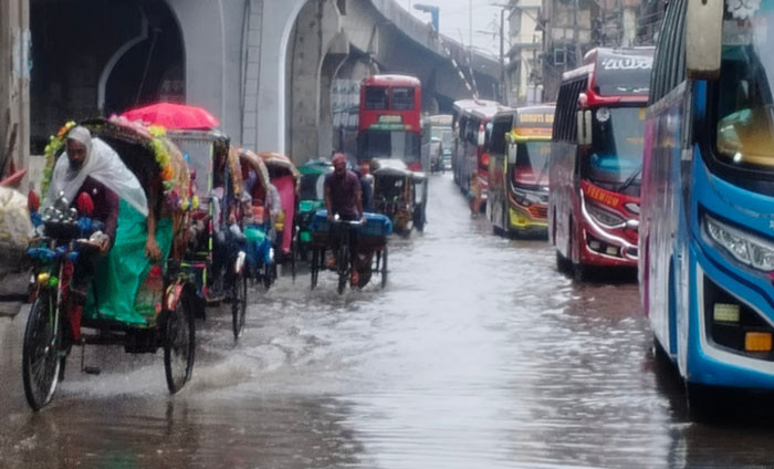 রোববার রাত থেকে সোমবার সকাল পর্যন্ত রাজধানীতে টানা কয়েক ঘণ্টার অবিরাম বৃষ্টি হয়। এতে বেশিরভাগ এলাকার পথঘাট পানিতে ডুবে গেছে। মিরপুর থেকে ছবি তুলেছেন জিএম মুজিবুর