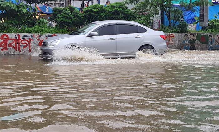 বৃষ্টিতে রাজধানীর সায়েদাবাদ এলাকায় জলবদ্ধতা হয়েছে/ছবি: শাকিল আহমেদ