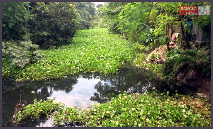 কচুরিপানার কারণে অপরিষ্কার হয়ে গেছে নদীর পানি। ছবি: নাটোর থেকে মামুনুর রশীদ