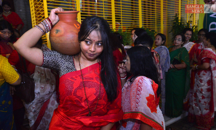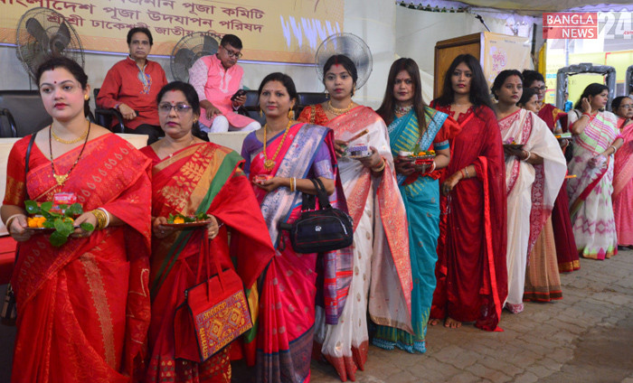 রাজধানীর ঢাকেশ্বরী মন্দিরে চলছে দুর্গা দেবী বিসর্জনের আনুষ্ঠানিকতা। ছবি: জি এম মুজিবুর