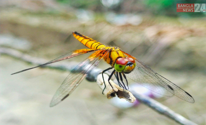 ডানা মেলে বসে আছে ফড়িং। ছবি: শাকিল আহমেদ