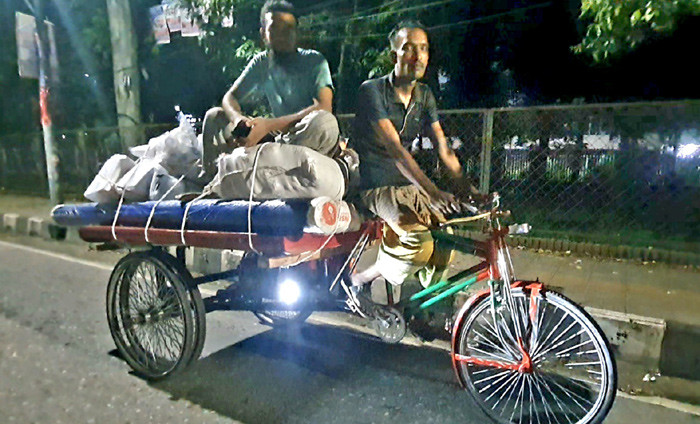 সাধারণত তিন চাকার অটো বা ভ্যানের দাপট দেখা যায় সড়কে। তবে সম্প্রতি পাঁচ চাকার ভ্যানও দেখা গেছে সড়কে। এতে সাধারণ ভ্যানের চেয়ে বেশি ভারী মালামাল বহন করা যায়। ছবি: জিএম মুজিবুর