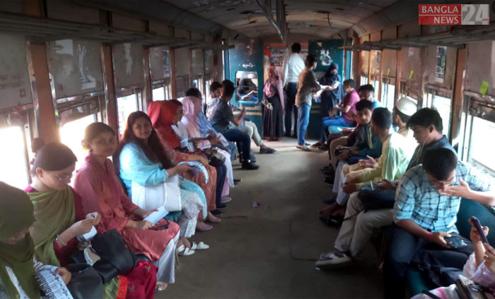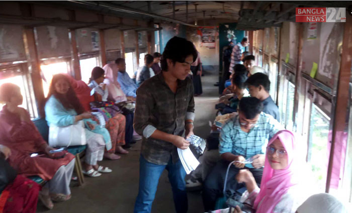 চাকসু নির্বাচনে ভোট দিতে চট্টগ্রাম নগর থেকে শাটল ট্রেনে বিশ্ববিদ্যালয় যাচ্ছেন শিক্ষাথীরা, প্রার্থীদের পক্ষে চলছে প্রচারণা । ছবি : সোহেল সরওয়ার