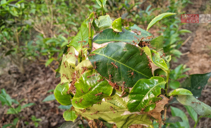 চায়ের পাতা দিয়ে তৈরি করা পিঁপড়ার বাসা/ছবি: বিশ্বজিৎ ভট্টাচার্য বাপ