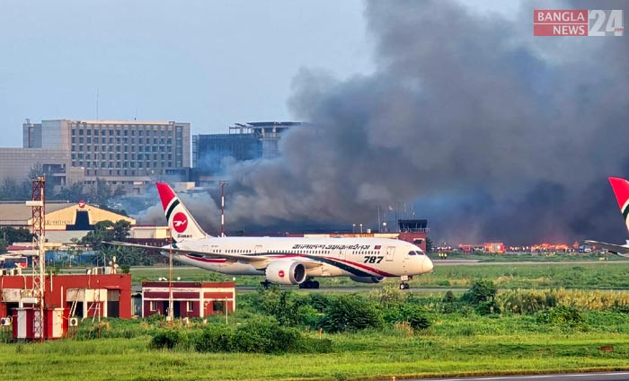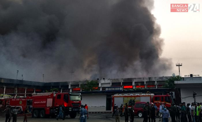 হযরত শাহজালাল আন্তর্জাতিক বিমানবন্দরের কার্গো ভিলেজ এলাকায় আগুন, ফ্লাইট চলাচল সাময়িক স্থগিত। ছবি: বাংলানিউজ